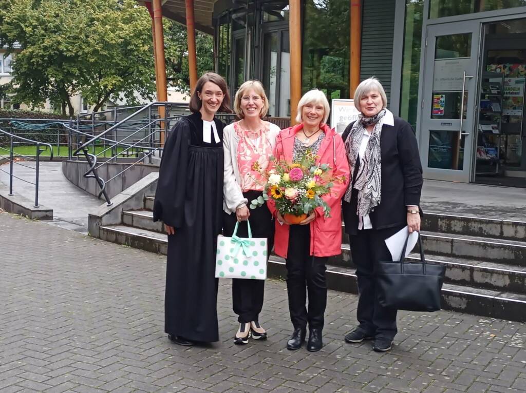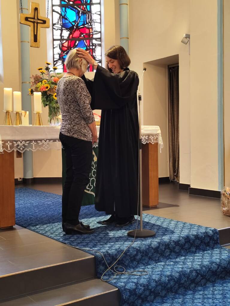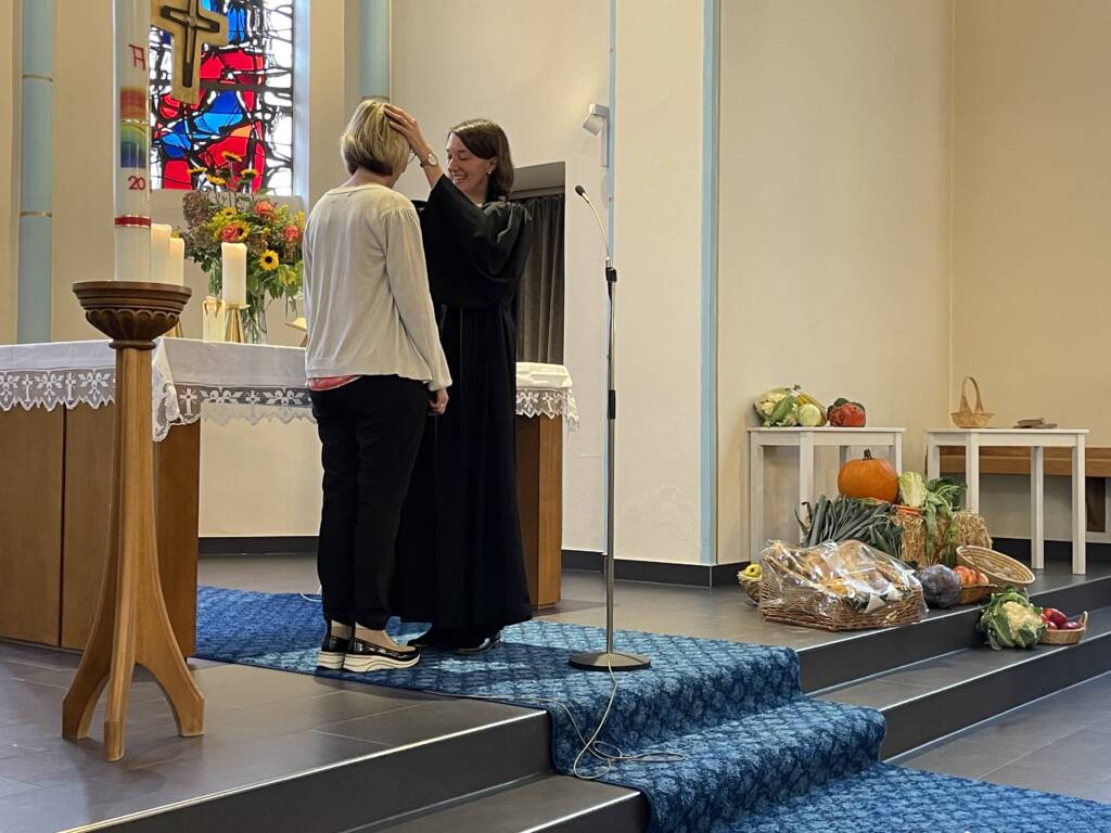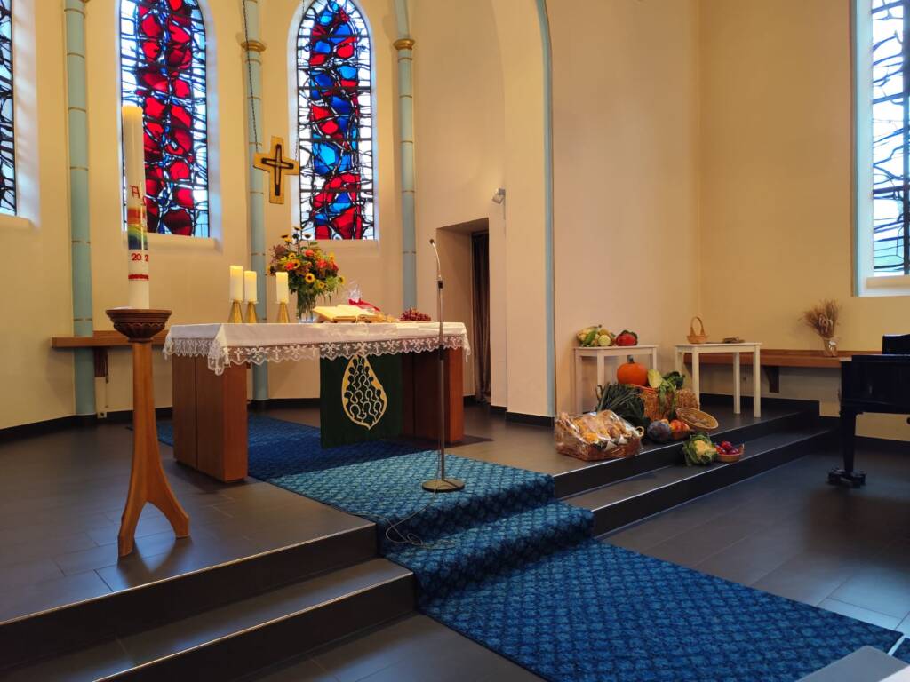 In einem feierlichen Gottesdienst in der Friedenskirche in Remagen zum Erntedankfest, haben wir Gott nicht nur für alles, was wir zum Leben brauchen und haben gedankt. Ein großes Dankeschön ging auch an Carola Klapperich, die in diesem Gottesdienst nach über 25 Dienstjahren im Remagener Gemeindebüro verabschiedet wurde. Außerdem wurden Nina Haselbauer, die sich bereits seit Mai als ihre Nachfolgerin in Remagen einarbeitet und Pastorin Annette Fastenrath, die die Stellvertretung für Pfarrerin Kuhn übernimmt offiziell willkommen geheißen. Im Anschluss an den Gottesdienst wurde im Gemeindehaus weiter gefeiert.