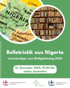 Über diesen Link können Sie sich anmelden: https://www.ebz-rheinland.de/veranstaltungen/frau-beruf-kompetenz/veranstaltungsdetails/belletristik-aus-nigeria-literaturtipps-zum-weltgebetstag-2026